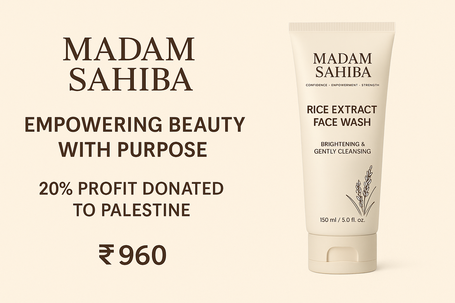 What truly sets Madam Sahiba apart in the skincare industry is its bold and compassionate Corporate Social Responsibility (CSR) initiative. The brand proudly donates 20% of all profits to support humanitarian aid in Palestine. It stands in solidarity with communities in need.